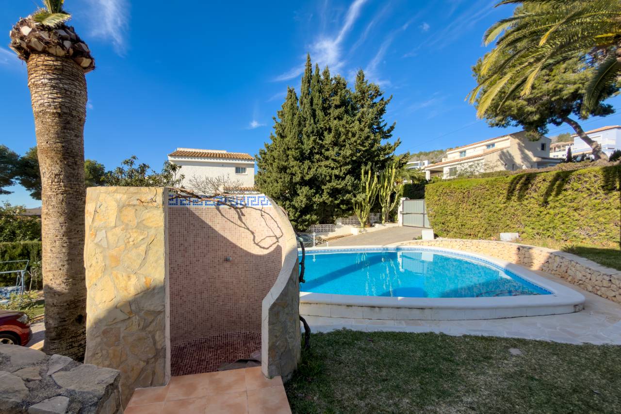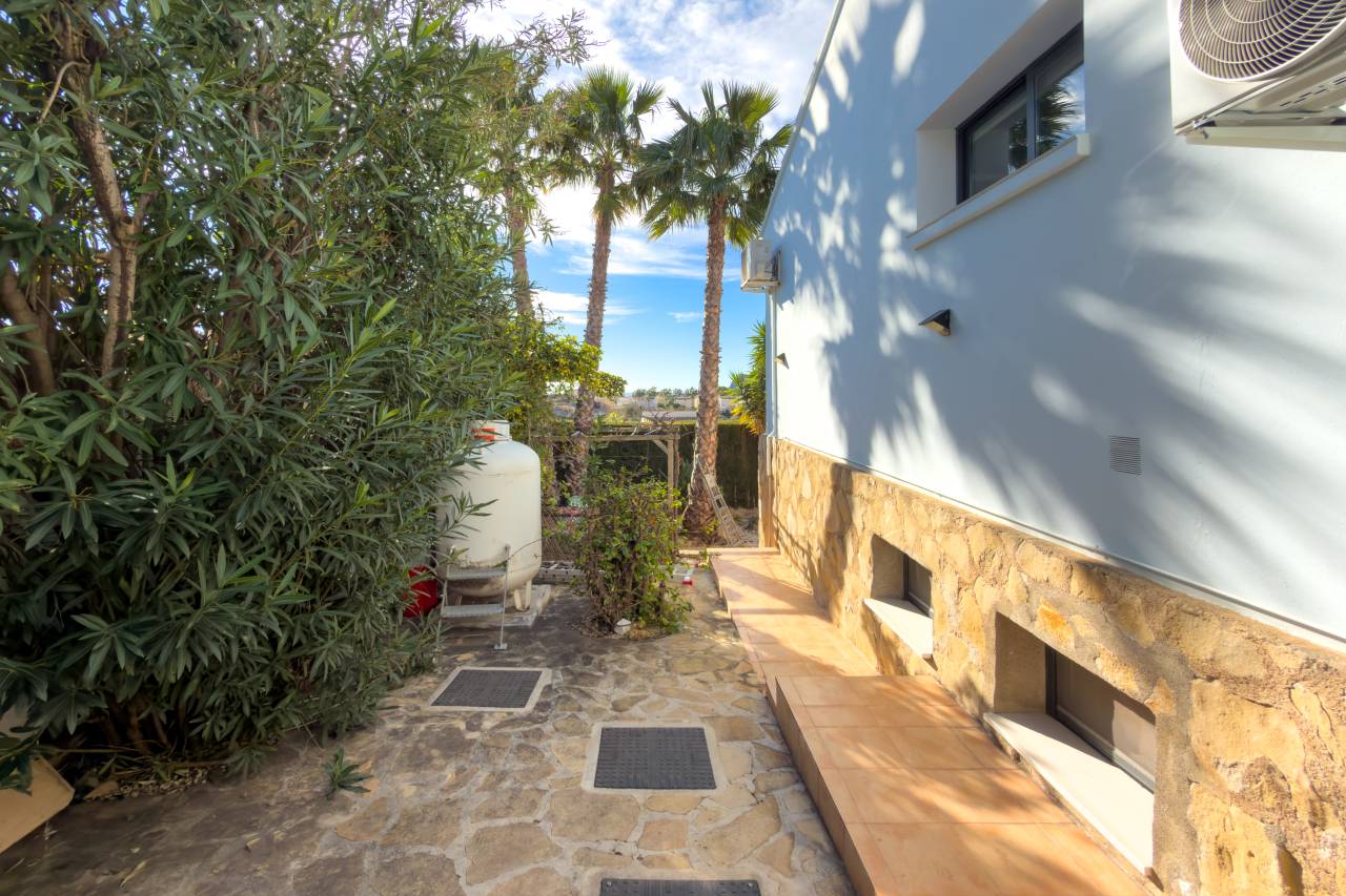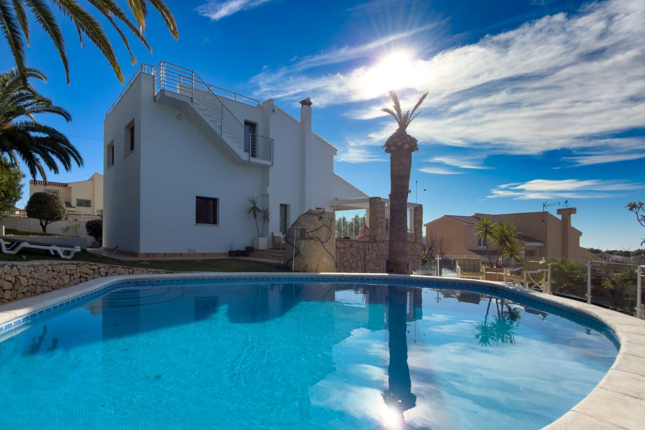 Esta villa de estilo mediterráneo en la zona de Gran Sol (Calpe) combina el diseño tradicional con una reforma integral moderna. Ubicada sobre una parcela de 898 m², destaca por su orientación sureste y vistas panorámicas al mar y al Peñón de Ifach.